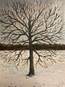 2020Onze kitten Noedel in zwart-wit, olie en stift op doek.